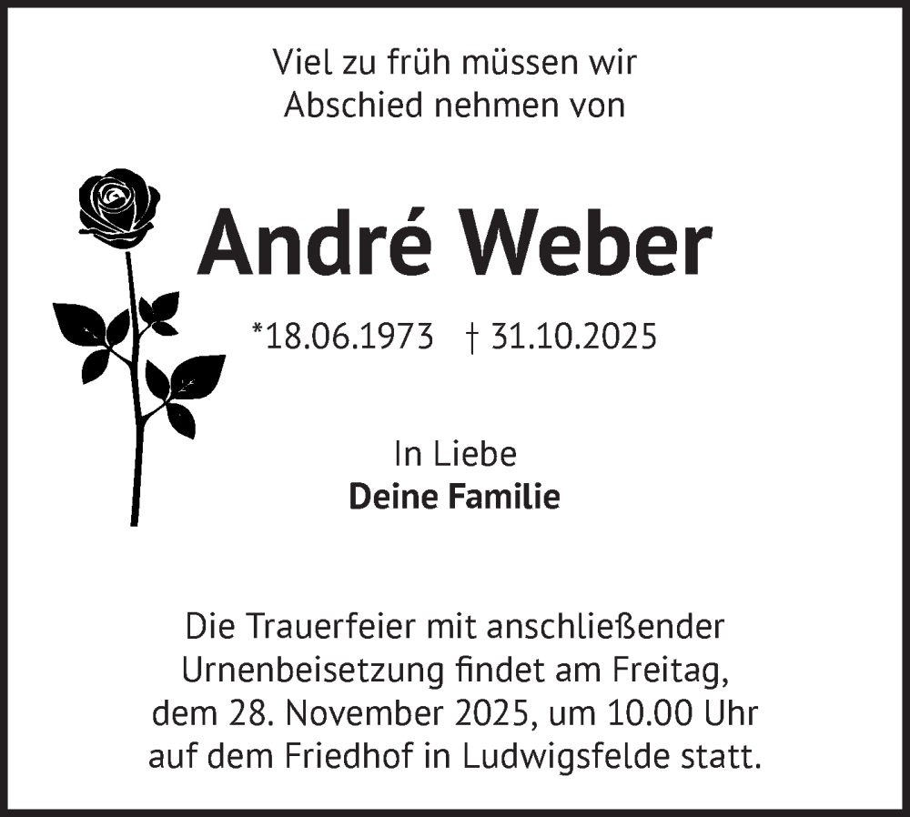 Hier finden Sie alle Traueranzeigen aus der Zeitung, die bisher für André Weber erschienen sind. Weitere Traueranzeigen, die in der Zeitung erscheinen, werden hier ebenfalls aufgelistet