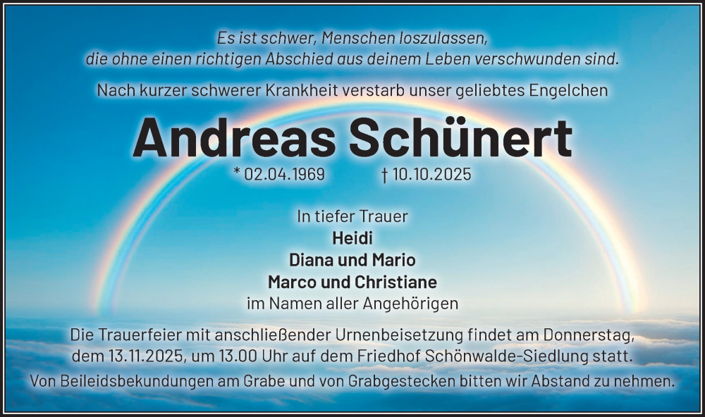 Hier finden Sie alle Traueranzeigen aus der Zeitung, die bisher für Andreas Schünert erschienen sind. Weitere Traueranzeigen, die in der Zeitung erscheinen, werden hier ebenfalls aufgelistet