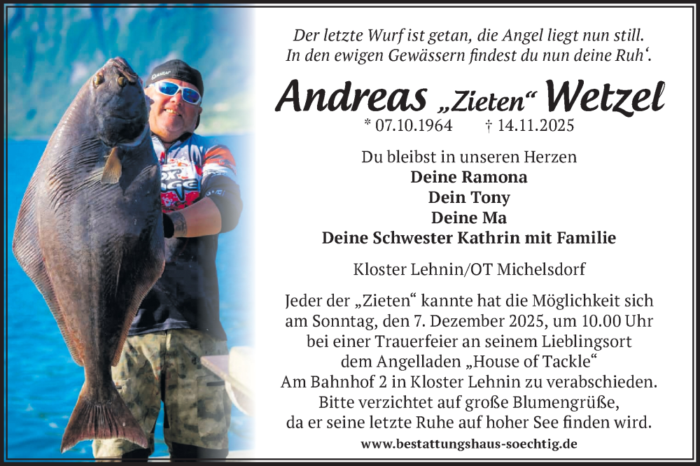 Hier finden Sie alle Traueranzeigen aus der Zeitung, die bisher für Andreas Wetzel erschienen sind. Weitere Traueranzeigen, die in der Zeitung erscheinen, werden hier ebenfalls aufgelistet