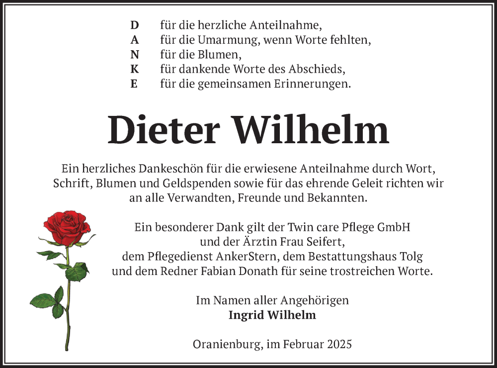 Hier finden Sie alle Traueranzeigen aus der Zeitung, die bisher für Dieter Wilhelm erschienen sind. Weitere Traueranzeigen, die in der Zeitung erscheinen, werden hier ebenfalls aufgelistet