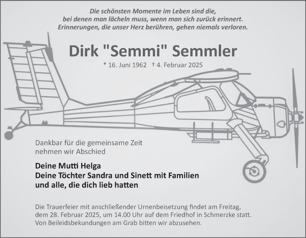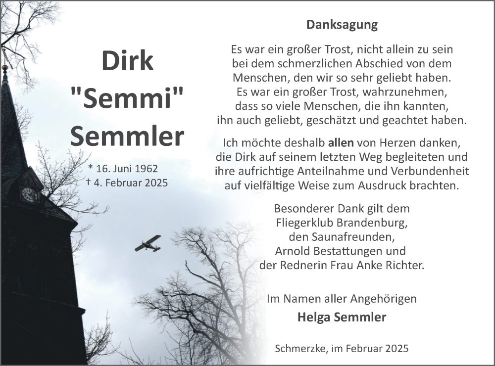 Hier finden Sie alle Traueranzeigen aus der Zeitung, die bisher für Dirk Semmler erschienen sind. Weitere Traueranzeigen, die in der Zeitung erscheinen, werden hier ebenfalls aufgelistet