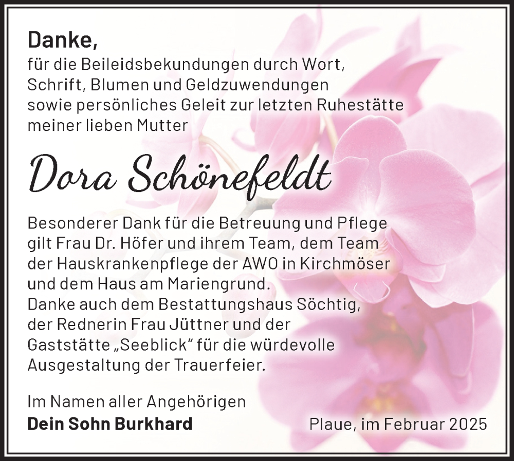 Hier finden Sie alle Traueranzeigen aus der Zeitung, die bisher für Dora Schönefeldt erschienen sind. Weitere Traueranzeigen, die in der Zeitung erscheinen, werden hier ebenfalls aufgelistet