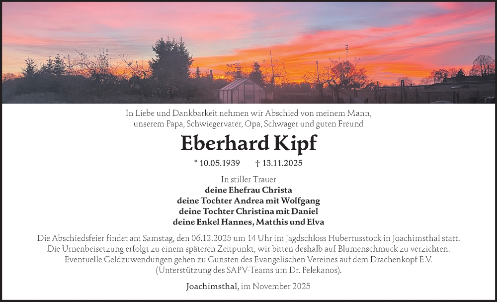 Hier finden Sie alle Traueranzeigen aus der Zeitung, die bisher für Eberhard Kipf erschienen sind. Weitere Traueranzeigen, die in der Zeitung erscheinen, werden hier ebenfalls aufgelistet