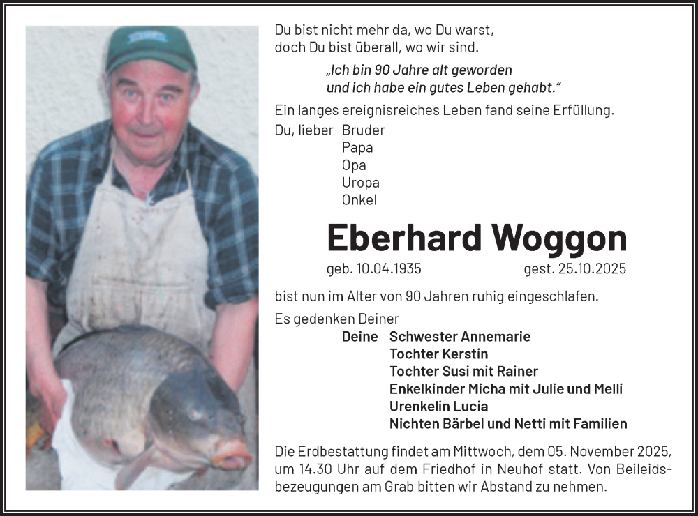 Hier finden Sie alle Traueranzeigen aus der Zeitung, die bisher für Eberhard Woggon erschienen sind. Weitere Traueranzeigen, die in der Zeitung erscheinen, werden hier ebenfalls aufgelistet