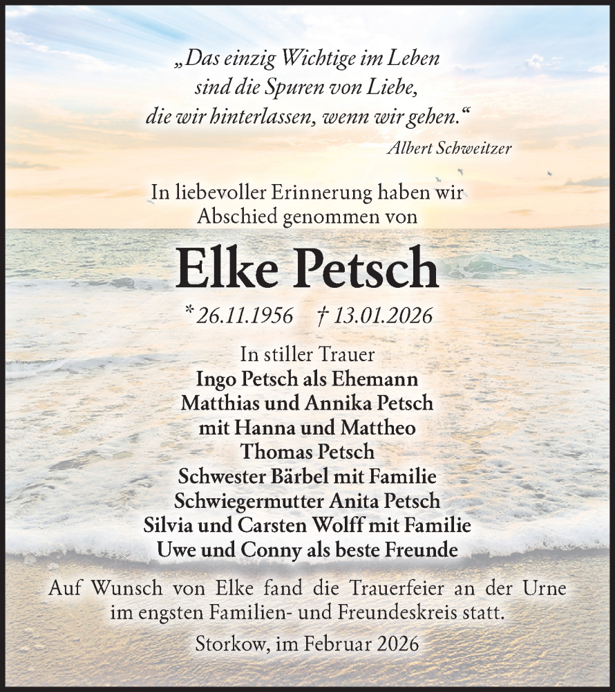 Hier finden Sie alle Traueranzeigen aus der Zeitung, die bisher für Elke Petsch erschienen sind. Weitere Traueranzeigen, die in der Zeitung erscheinen, werden hier ebenfalls aufgelistet