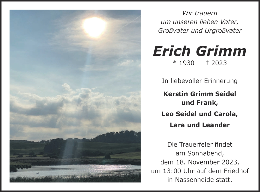 Hier finden Sie alle Traueranzeigen aus der Zeitung, die bisher für Erich Grimm erschienen sind. Weitere Traueranzeigen, die in der Zeitung erscheinen, werden hier ebenfalls aufgelistet