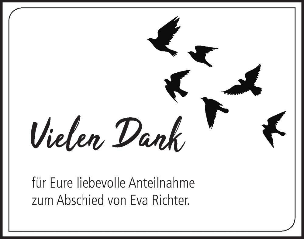 Hier finden Sie alle Traueranzeigen aus der Zeitung, die bisher für Eva Richter erschienen sind. Weitere Traueranzeigen, die in der Zeitung erscheinen, werden hier ebenfalls aufgelistet