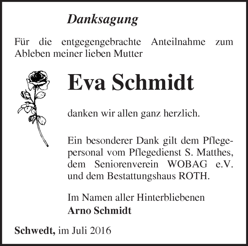 Hier finden Sie alle Traueranzeigen aus der Zeitung, die bisher für Eva Schmidt erschienen sind. Weitere Traueranzeigen, die in der Zeitung erscheinen, werden hier ebenfalls aufgelistet