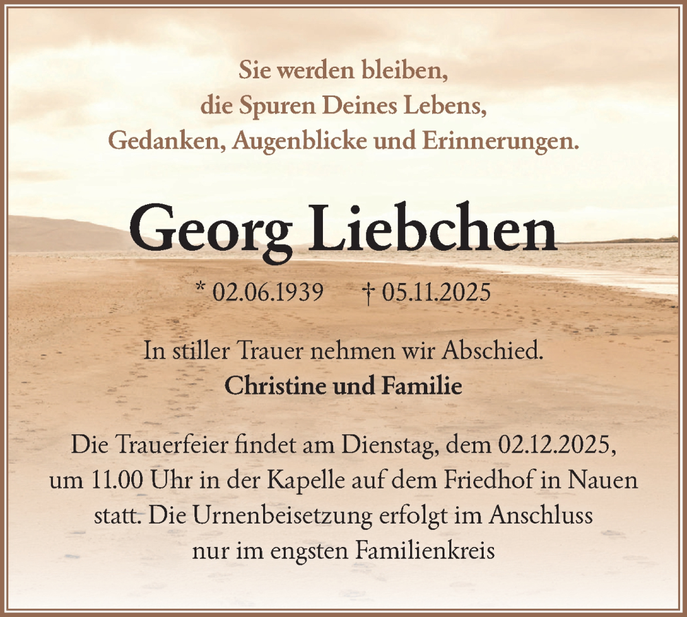 Hier finden Sie alle Traueranzeigen aus der Zeitung, die bisher für Georg Liebchen erschienen sind. Weitere Traueranzeigen, die in der Zeitung erscheinen, werden hier ebenfalls aufgelistet