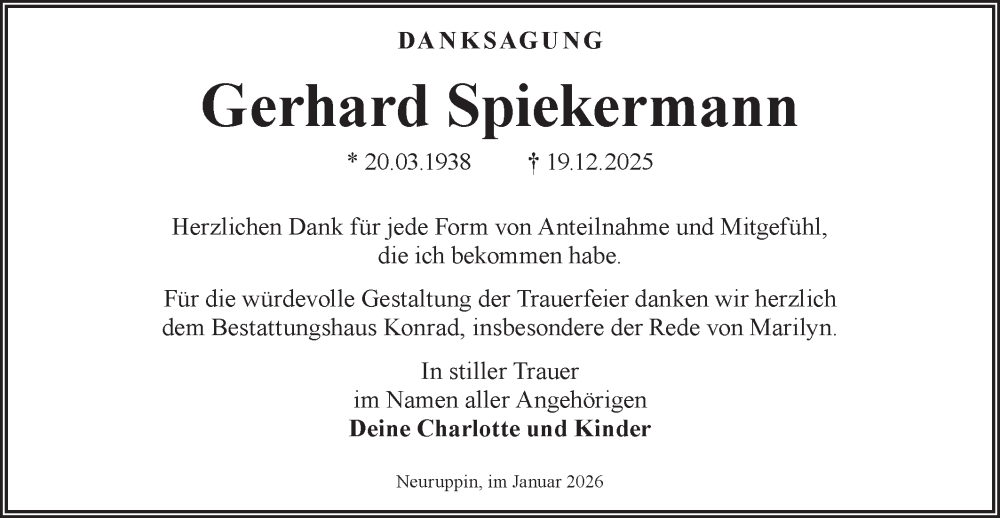 Hier finden Sie alle Traueranzeigen aus der Zeitung, die bisher für Gerhard Spiekermann erschienen sind. Weitere Traueranzeigen, die in der Zeitung erscheinen, werden hier ebenfalls aufgelistet