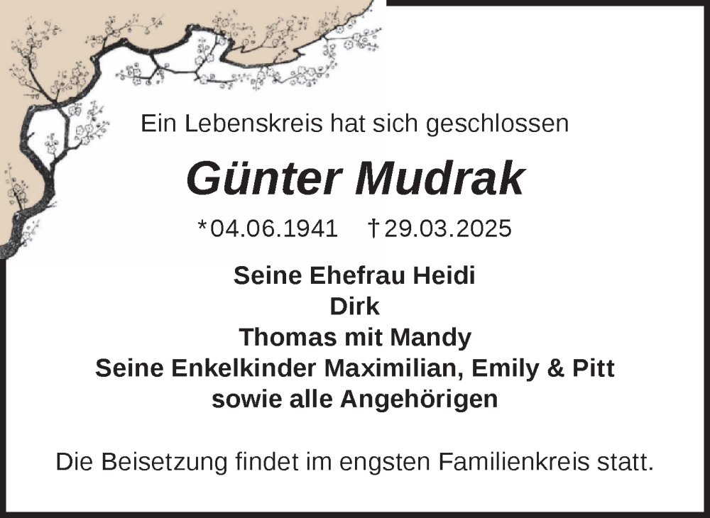 Hier finden Sie alle Traueranzeigen aus der Zeitung, die bisher für Günter Mudrak erschienen sind. Weitere Traueranzeigen, die in der Zeitung erscheinen, werden hier ebenfalls aufgelistet