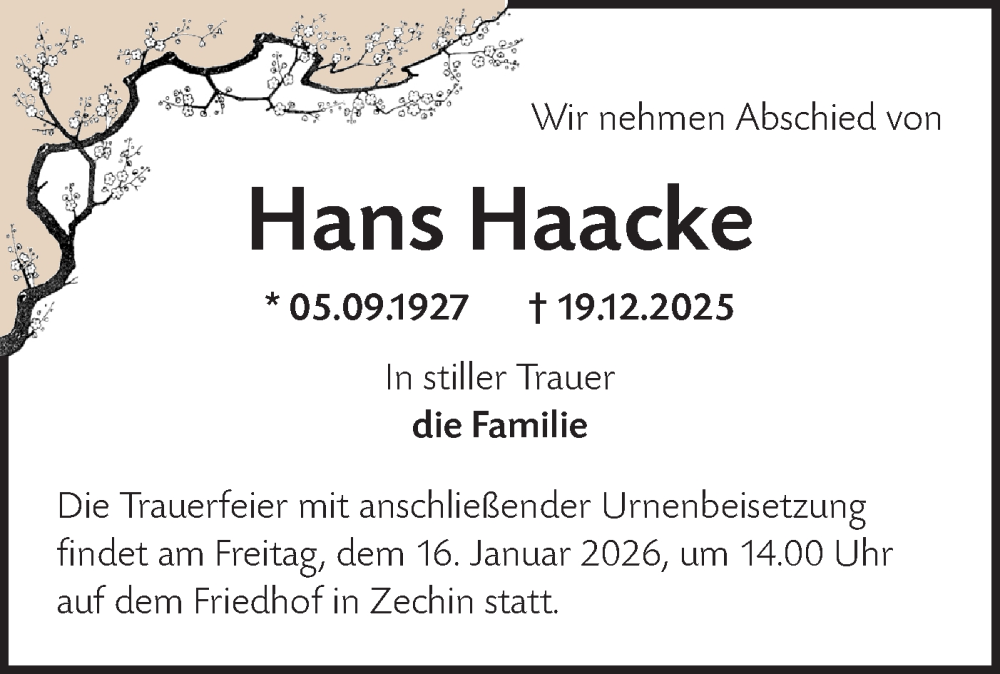 Hier finden Sie alle Traueranzeigen aus der Zeitung, die bisher für Hans Haacke erschienen sind. Weitere Traueranzeigen, die in der Zeitung erscheinen, werden hier ebenfalls aufgelistet