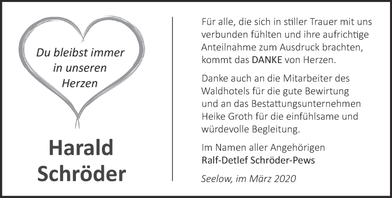 Hier finden Sie alle Traueranzeigen aus der Zeitung, die bisher für Harald Schröder erschienen sind. Weitere Traueranzeigen, die in der Zeitung erscheinen, werden hier ebenfalls aufgelistet