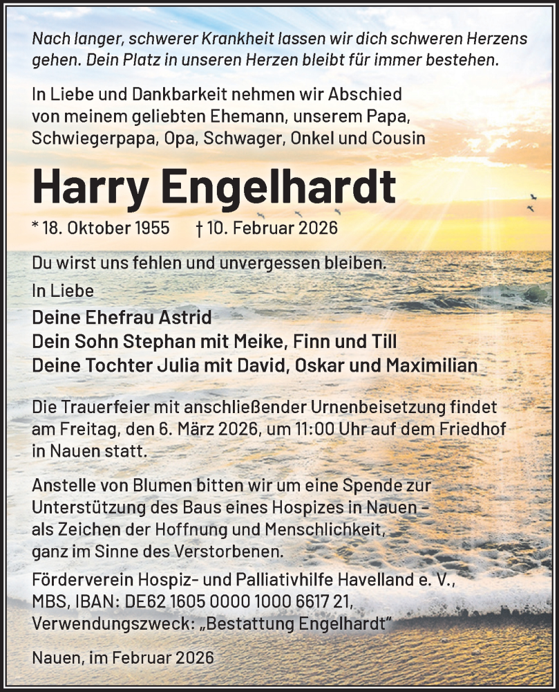 Hier finden Sie alle Traueranzeigen aus der Zeitung, die bisher für Harry Engelhardt erschienen sind. Weitere Traueranzeigen, die in der Zeitung erscheinen, werden hier ebenfalls aufgelistet