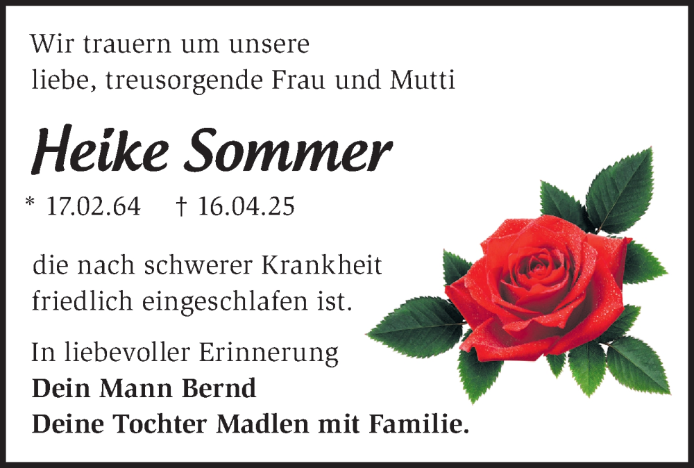 Hier finden Sie alle Traueranzeigen aus der Zeitung, die bisher für Heike Sommer erschienen sind. Weitere Traueranzeigen, die in der Zeitung erscheinen, werden hier ebenfalls aufgelistet