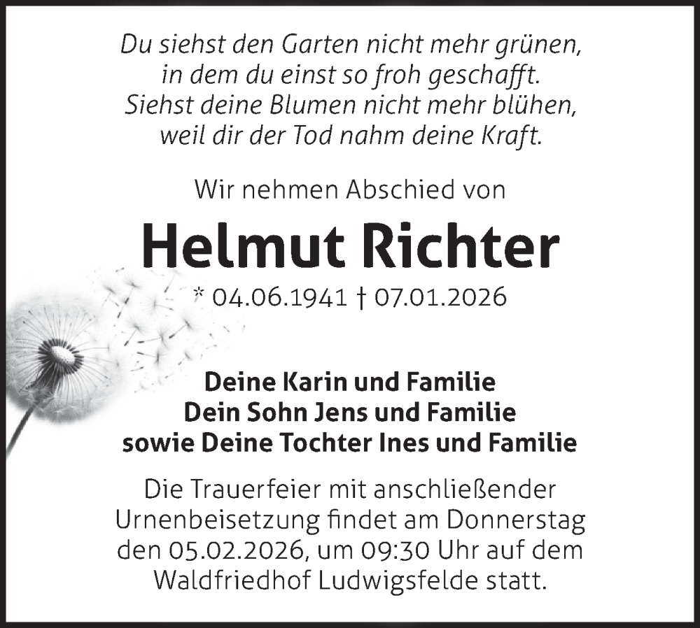Hier finden Sie alle Traueranzeigen aus der Zeitung, die bisher für Helmut Richter erschienen sind. Weitere Traueranzeigen, die in der Zeitung erscheinen, werden hier ebenfalls aufgelistet