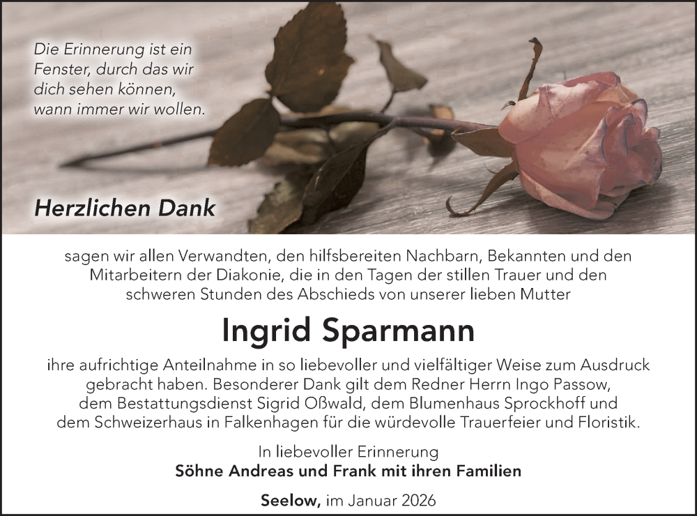 Hier finden Sie alle Traueranzeigen aus der Zeitung, die bisher für Ingrid Sparmann erschienen sind. Weitere Traueranzeigen, die in der Zeitung erscheinen, werden hier ebenfalls aufgelistet