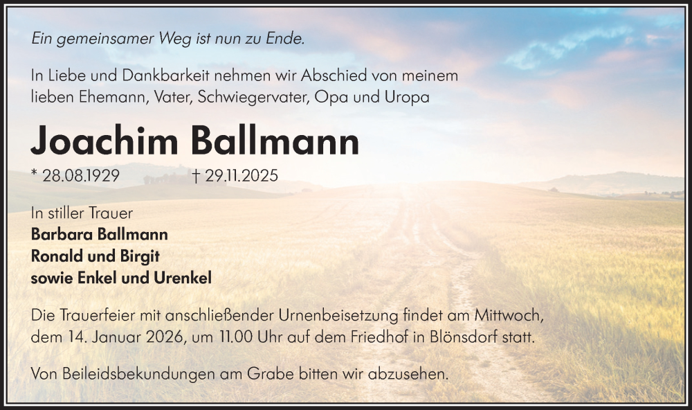 Hier finden Sie alle Traueranzeigen aus der Zeitung, die bisher für Joachim Ballmann erschienen sind. Weitere Traueranzeigen, die in der Zeitung erscheinen, werden hier ebenfalls aufgelistet