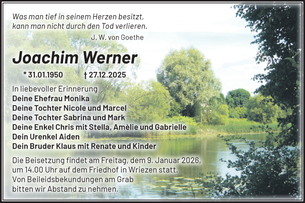 Hier finden Sie alle Traueranzeigen aus der Zeitung, die bisher für Joachim Werner erschienen sind. Weitere Traueranzeigen, die in der Zeitung erscheinen, werden hier ebenfalls aufgelistet