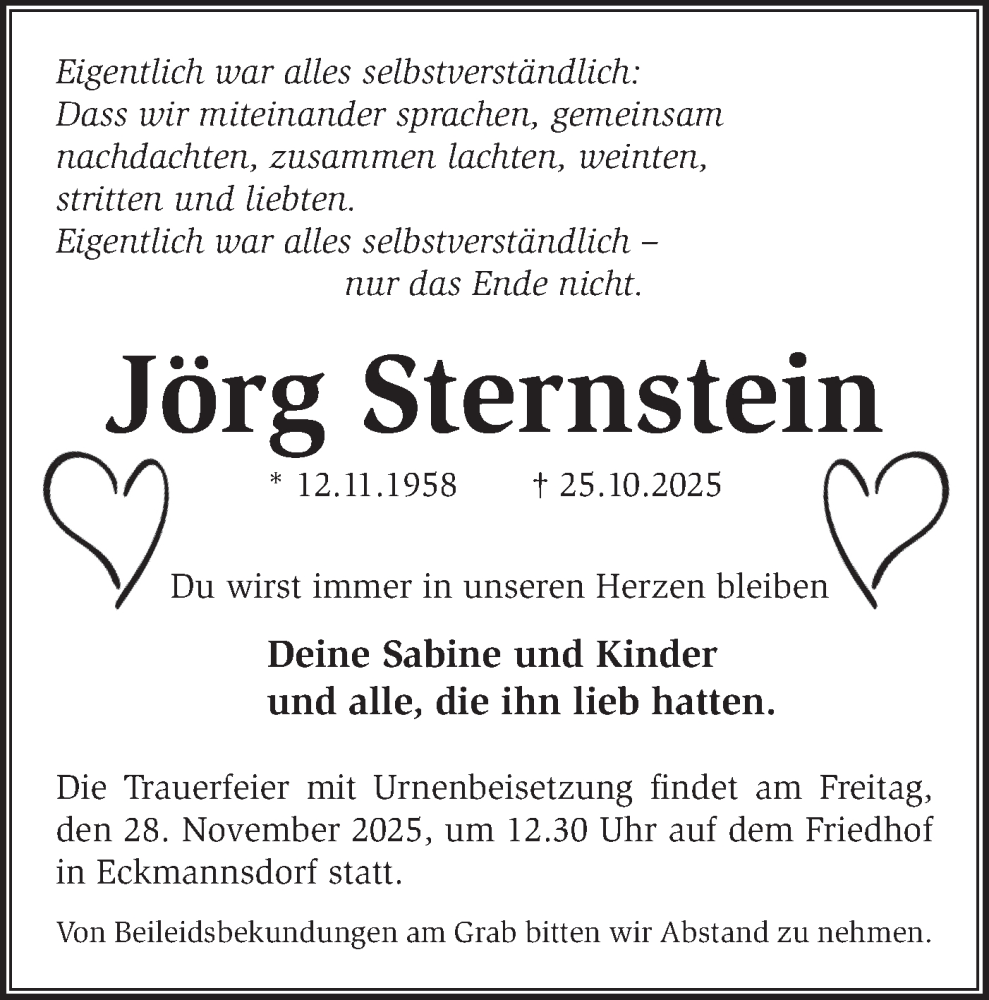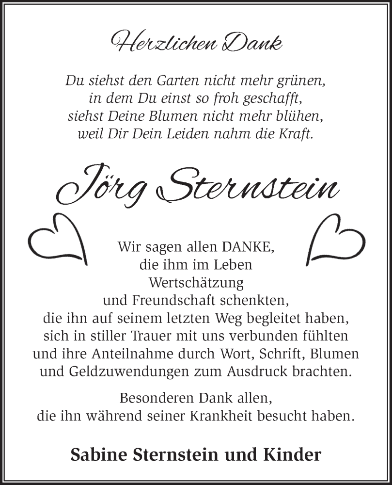 Hier finden Sie alle Traueranzeigen aus der Zeitung, die bisher für Jörg Sternstein erschienen sind. Weitere Traueranzeigen, die in der Zeitung erscheinen, werden hier ebenfalls aufgelistet