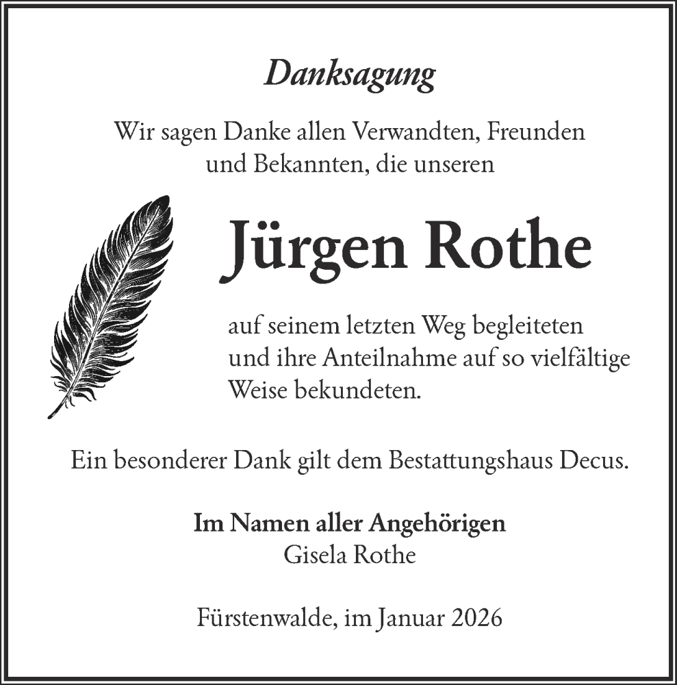 Hier finden Sie alle Traueranzeigen aus der Zeitung, die bisher für Jürgen Rothe erschienen sind. Weitere Traueranzeigen, die in der Zeitung erscheinen, werden hier ebenfalls aufgelistet