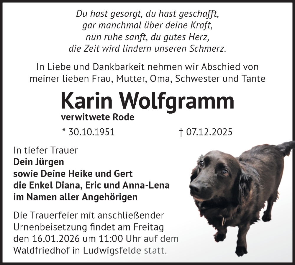 Hier finden Sie alle Traueranzeigen aus der Zeitung, die bisher für Karin Wolfgramm erschienen sind. Weitere Traueranzeigen, die in der Zeitung erscheinen, werden hier ebenfalls aufgelistet