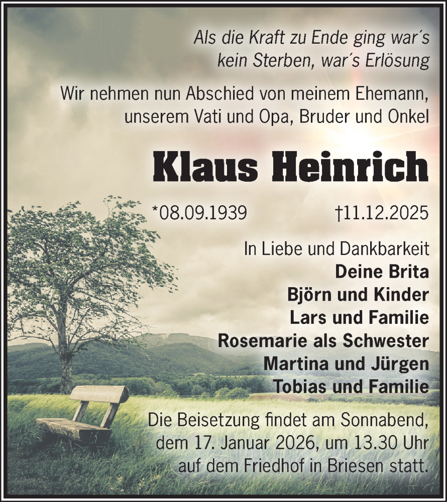 Hier finden Sie alle Traueranzeigen aus der Zeitung, die bisher für Klaus Heinrich erschienen sind. Weitere Traueranzeigen, die in der Zeitung erscheinen, werden hier ebenfalls aufgelistet