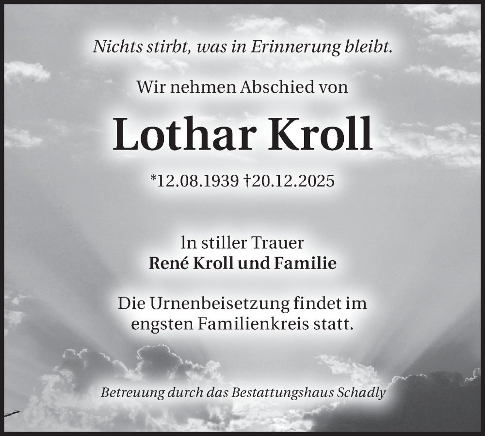 Hier finden Sie alle Traueranzeigen aus der Zeitung, die bisher für Lothar Kroll erschienen sind. Weitere Traueranzeigen, die in der Zeitung erscheinen, werden hier ebenfalls aufgelistet