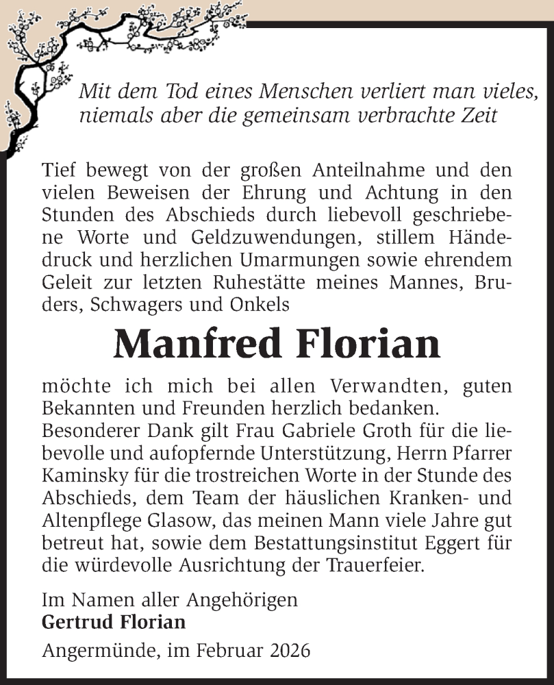 Hier finden Sie alle Traueranzeigen aus der Zeitung, die bisher für Manfred Florian erschienen sind. Weitere Traueranzeigen, die in der Zeitung erscheinen, werden hier ebenfalls aufgelistet