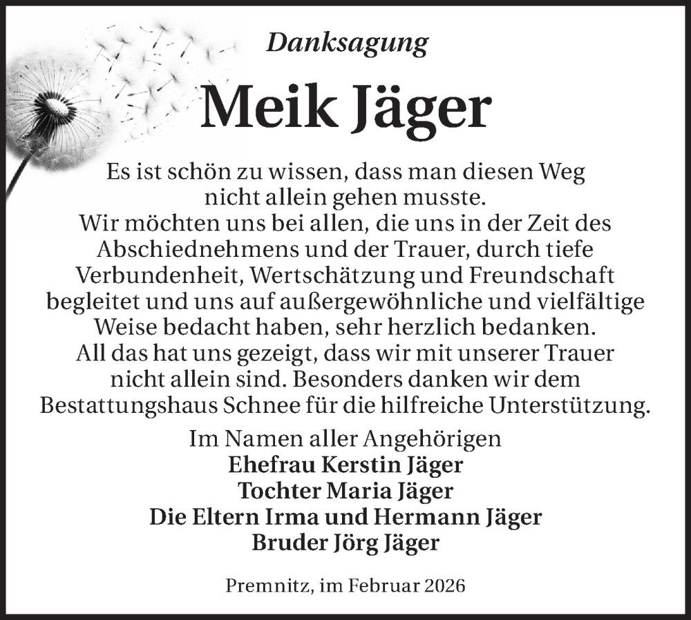 Hier finden Sie alle Traueranzeigen aus der Zeitung, die bisher für Meik Jäger erschienen sind. Weitere Traueranzeigen, die in der Zeitung erscheinen, werden hier ebenfalls aufgelistet