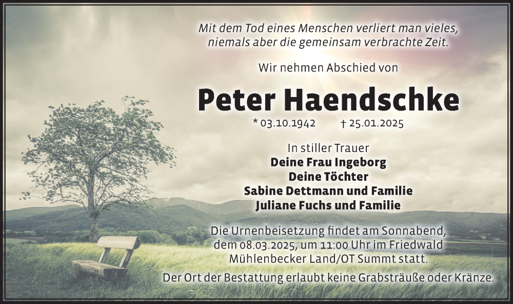 Hier finden Sie alle Traueranzeigen aus der Zeitung, die bisher für Peter Haendschke erschienen sind. Weitere Traueranzeigen, die in der Zeitung erscheinen, werden hier ebenfalls aufgelistet