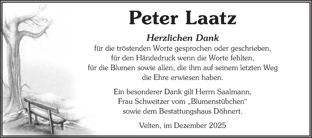 Hier finden Sie alle Traueranzeigen aus der Zeitung, die bisher für Peter Laatz erschienen sind. Weitere Traueranzeigen, die in der Zeitung erscheinen, werden hier ebenfalls aufgelistet