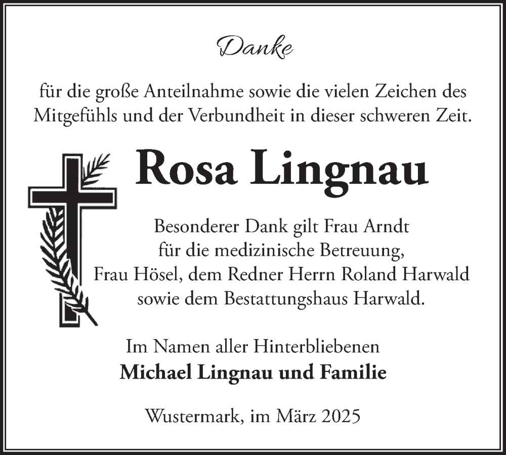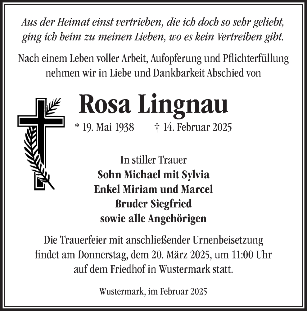 Hier finden Sie alle Traueranzeigen aus der Zeitung, die bisher für Rosa Lingnau erschienen sind. Weitere Traueranzeigen, die in der Zeitung erscheinen, werden hier ebenfalls aufgelistet