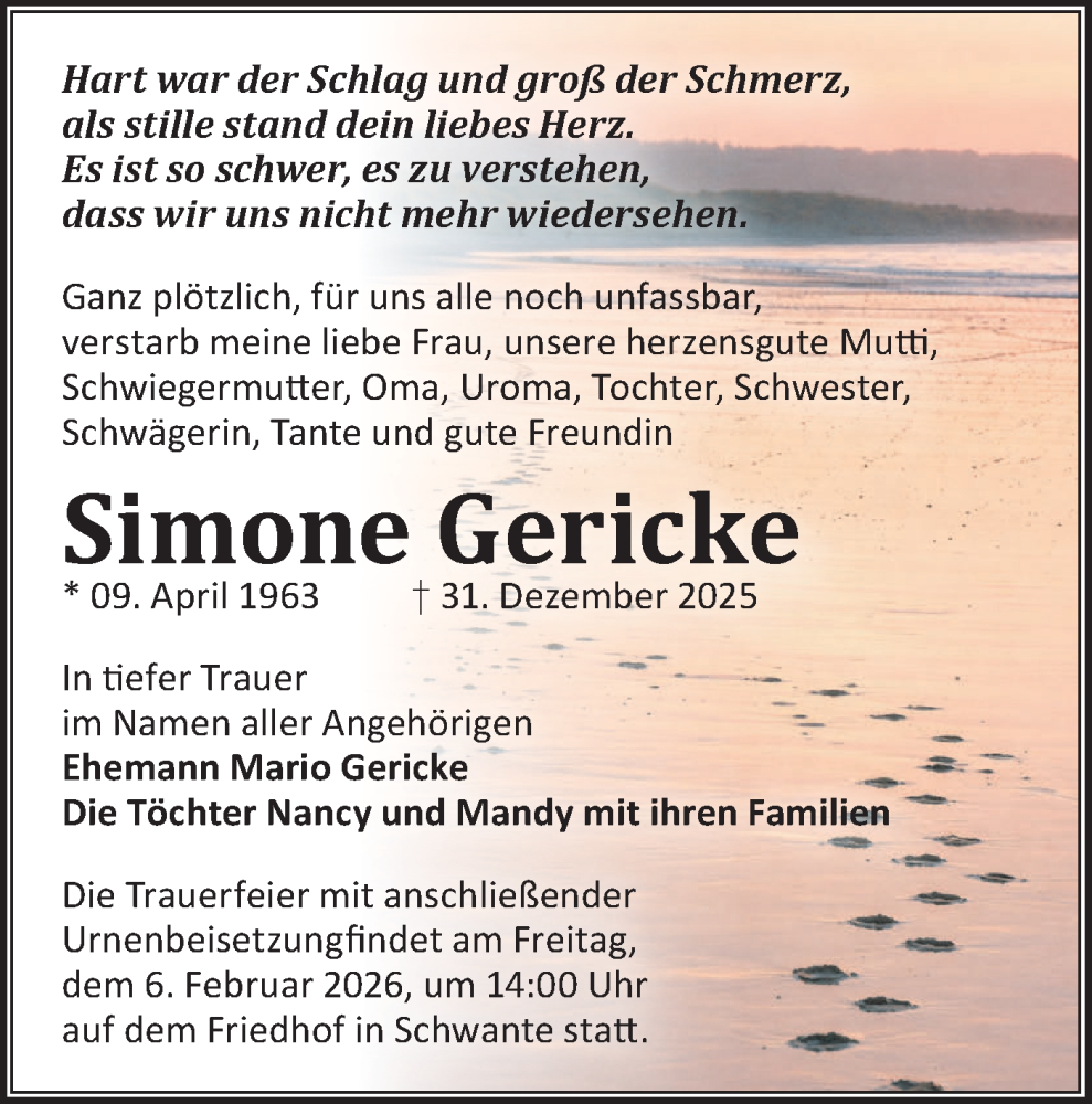 Hier finden Sie alle Traueranzeigen aus der Zeitung, die bisher für Simone Gericke erschienen sind. Weitere Traueranzeigen, die in der Zeitung erscheinen, werden hier ebenfalls aufgelistet