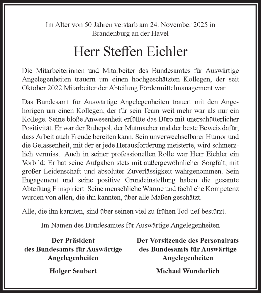 Hier finden Sie alle Traueranzeigen aus der Zeitung, die bisher für Steffen Eichler erschienen sind. Weitere Traueranzeigen, die in der Zeitung erscheinen, werden hier ebenfalls aufgelistet