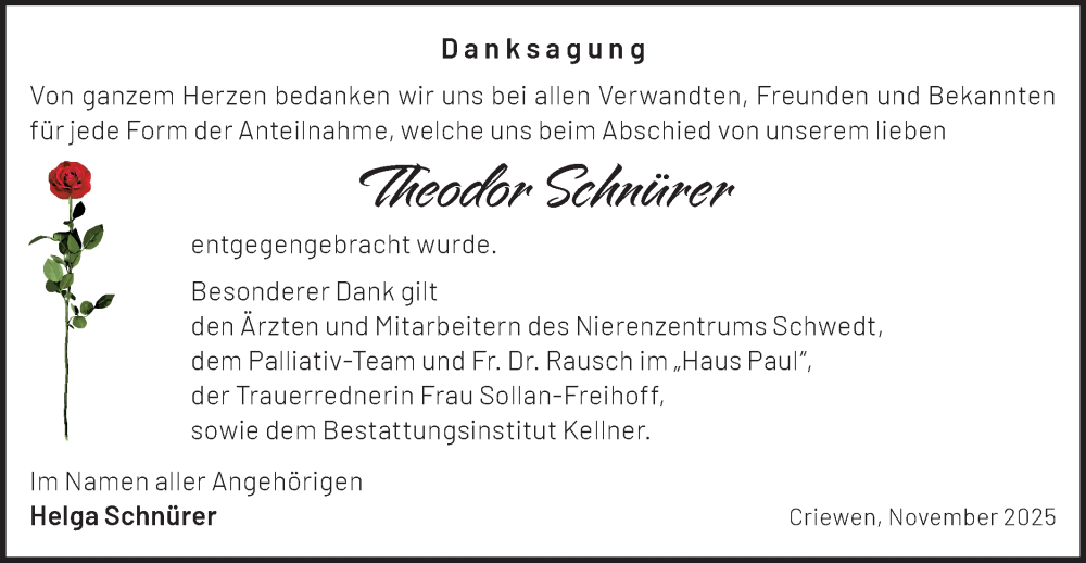 Hier finden Sie alle Traueranzeigen aus der Zeitung, die bisher für Theodor Schnürer erschienen sind. Weitere Traueranzeigen, die in der Zeitung erscheinen, werden hier ebenfalls aufgelistet