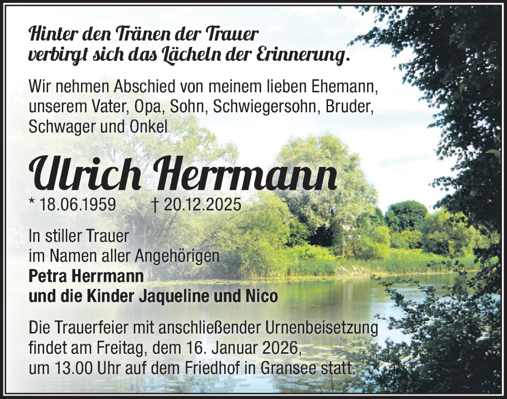 Hier finden Sie alle Traueranzeigen aus der Zeitung, die bisher für Ulrich Herrmann erschienen sind. Weitere Traueranzeigen, die in der Zeitung erscheinen, werden hier ebenfalls aufgelistet