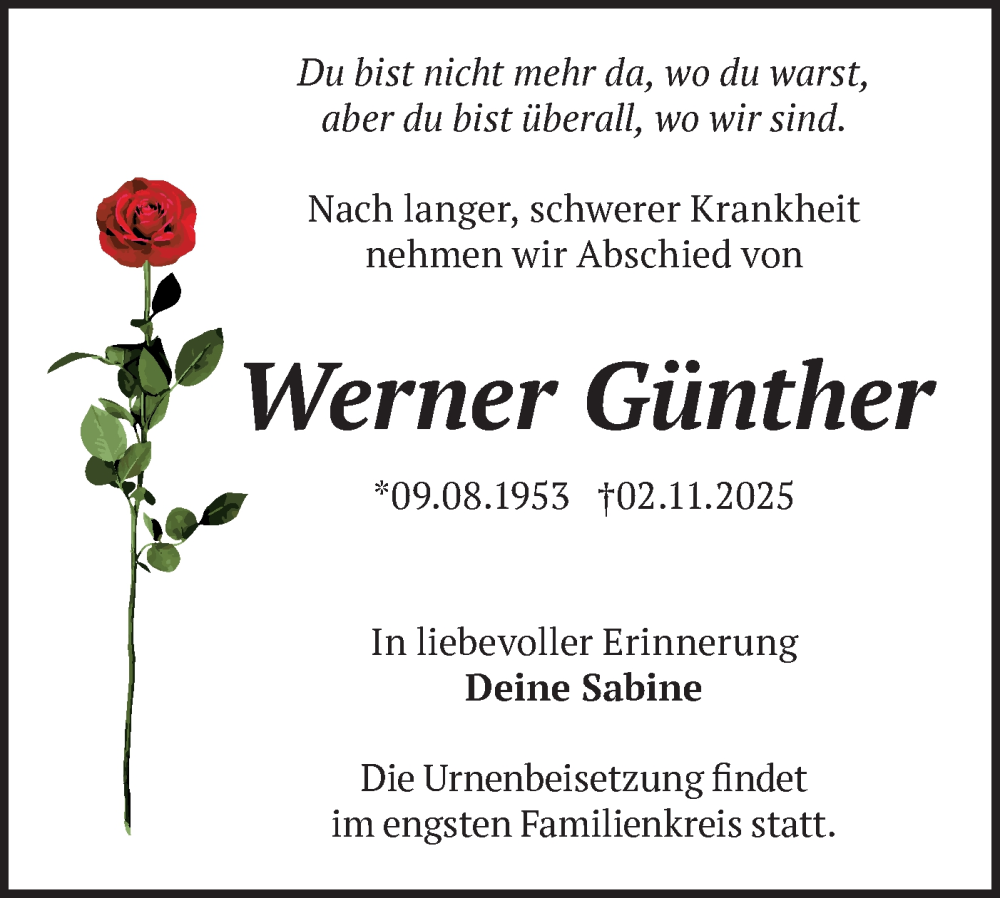 Hier finden Sie alle Traueranzeigen aus der Zeitung, die bisher für Werner Günther erschienen sind. Weitere Traueranzeigen, die in der Zeitung erscheinen, werden hier ebenfalls aufgelistet
