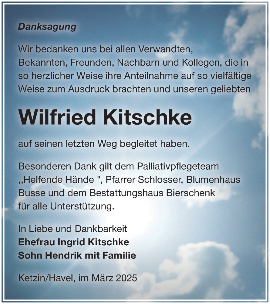 Hier finden Sie alle Traueranzeigen aus der Zeitung, die bisher für Wilfried Kitschke erschienen sind. Weitere Traueranzeigen, die in der Zeitung erscheinen, werden hier ebenfalls aufgelistet