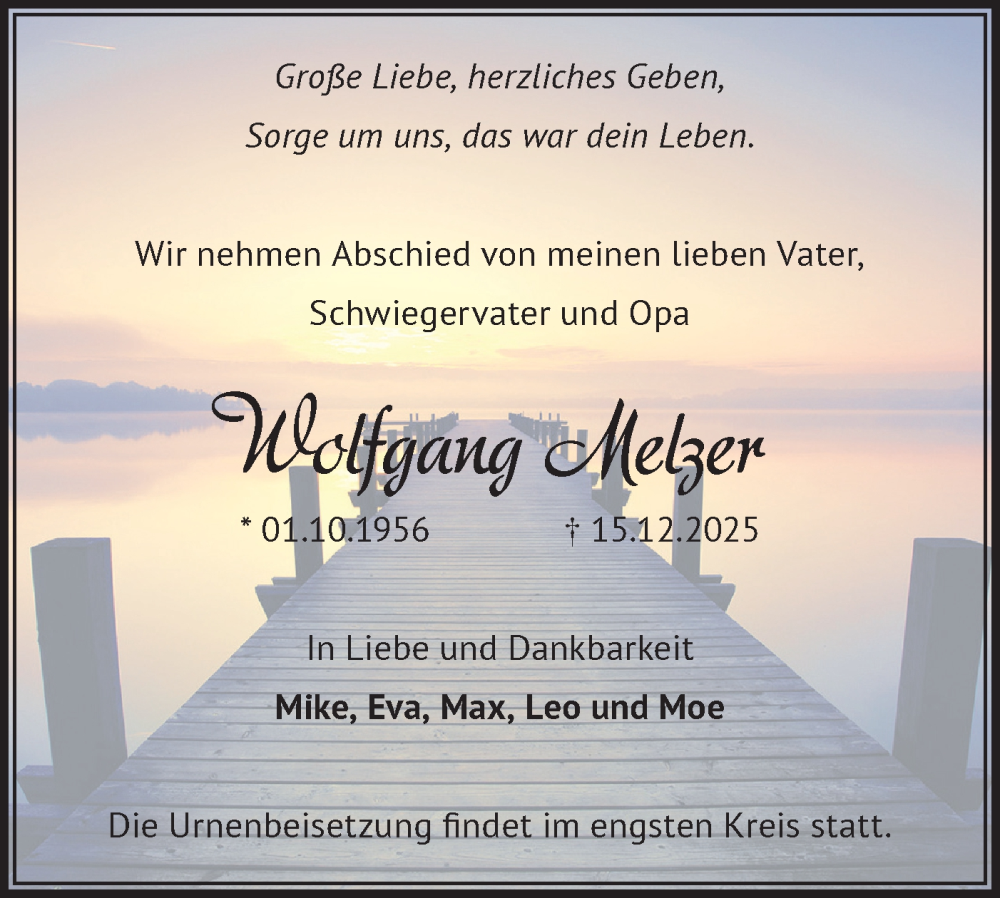 Hier finden Sie alle Traueranzeigen aus der Zeitung, die bisher für Wolfgang Melzer erschienen sind. Weitere Traueranzeigen, die in der Zeitung erscheinen, werden hier ebenfalls aufgelistet